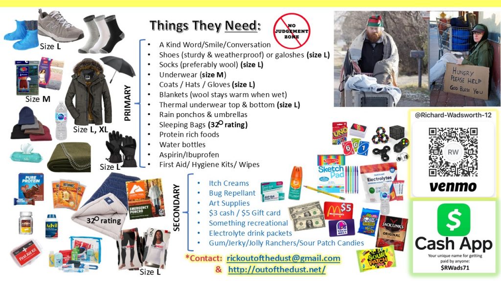 Supplies That Are Needed Especially During the Winter Months *Here are the supplies that are not generally provided by shelters or charities: