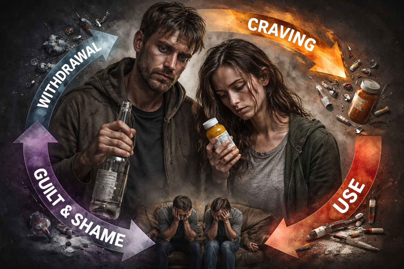 People struggling with addiction tend to isolate, feel shame, guilt, unworthy, and disconnected from themselves and others and use substances (or behaviors) to escape feelings of discomfort. *All addictions follow a similar cycle: