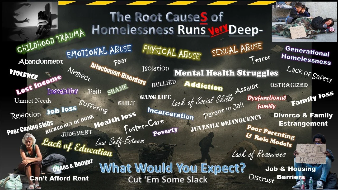 Homelessness is multi-faceted problem with no easy solution but CAN BE FIXED with proper education, sufficient wrap-around resources, skill development, personal accountability, strength-based engagement, and public/politician buy-in for effective program development and continuity of care. Six groups need to be considered in the process: